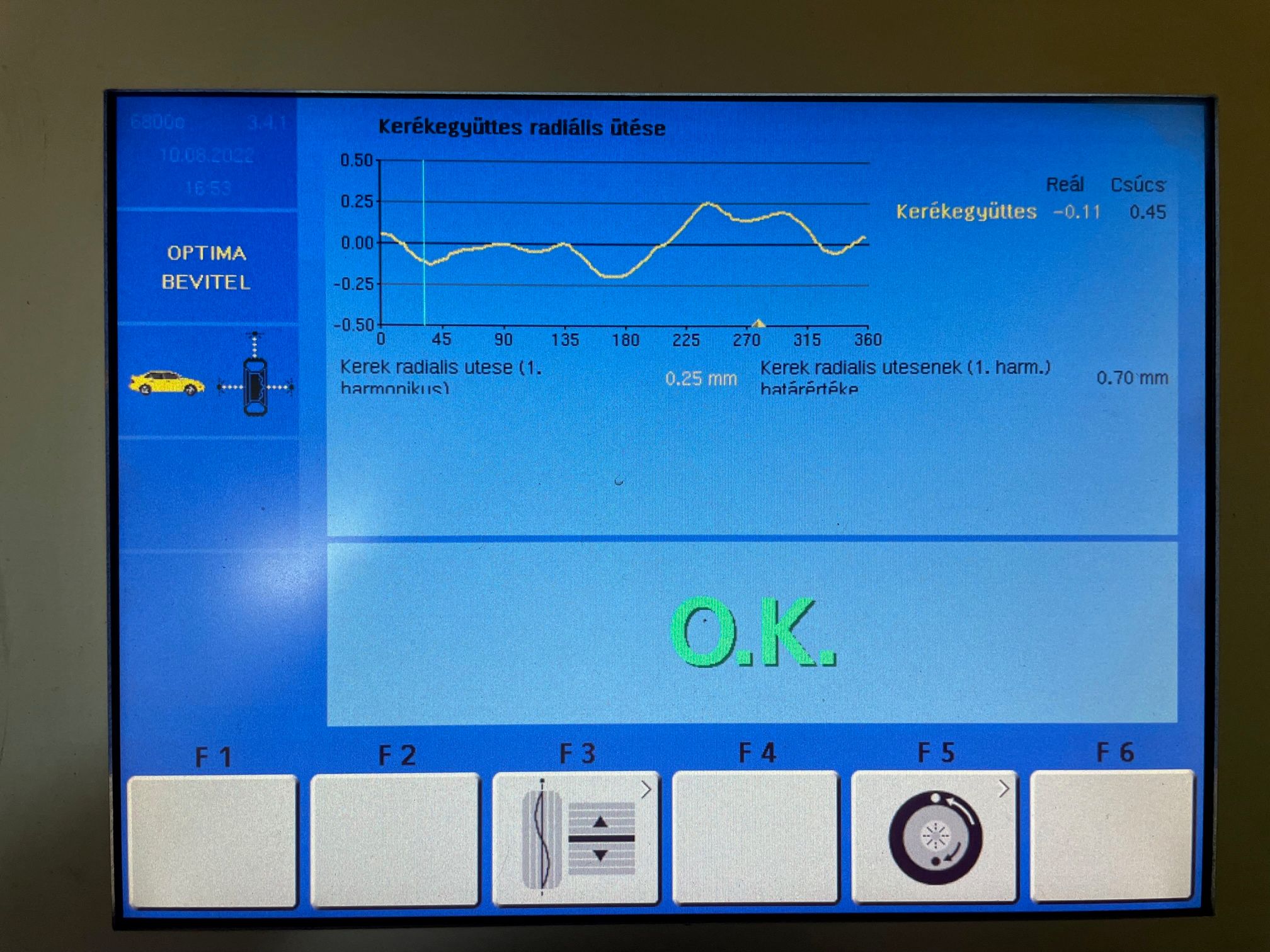 Műszaki jellemzők: VPM virtuális mérősík mérési elv 3D technika = automatikus adatbevitel geodata = teleszkópos mérőkar súlypozícionálóval ASS automatikus kerékfék Automatikus 12 óraállásba való beforgás HSP rejtett ragasztott súlyelhelyezés 1 acél-5 alu súlyelhelyezési program színes monitor felni megvilágítás P=power clamp elektromechanikus tokmány Ára: 1.580.0000,-Ft